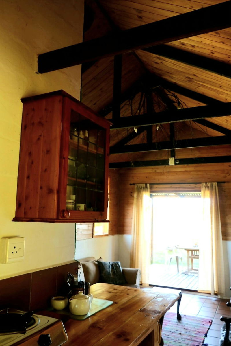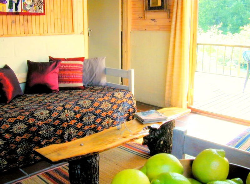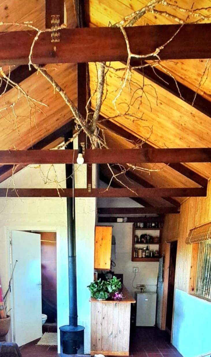 OFFERS: A double bedroom with painted cement floor, a bathroom with shower, and a kitchen galley with all you need for a comfy stay. An open-plan lounge with fireplace, quarry tiled floors (with a small sleeper couch for a child).